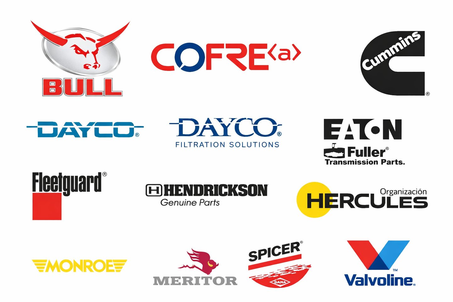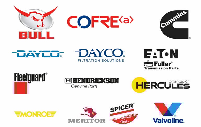 Contamos con repuestos para motores, frenos, suspensión y transmisión de marcas como Cummins, Eaton, Meritor, Hendrickson, Fleetguard y Valvoline.